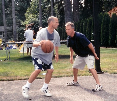 Dave is my 44 year old brother (three years younger than me). Here is a recent picture of him taking me to the hoop in my own driveway. This is his third year participating in the March Madness Pool. He now lives in Richland, Washington with his wife Suzie and their children. Here is a great picture of his youngest son Jake sporting a Tux.